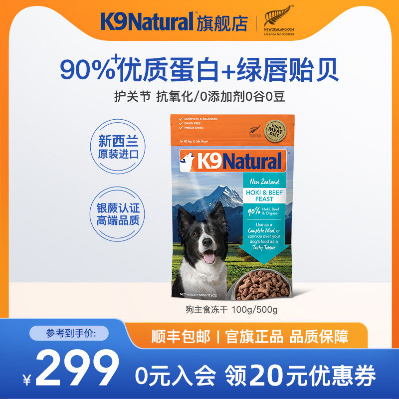 K9新西兰进口幼成犬主食500g高肉高蛋白0谷物青口贝冻干贻贝狗粮