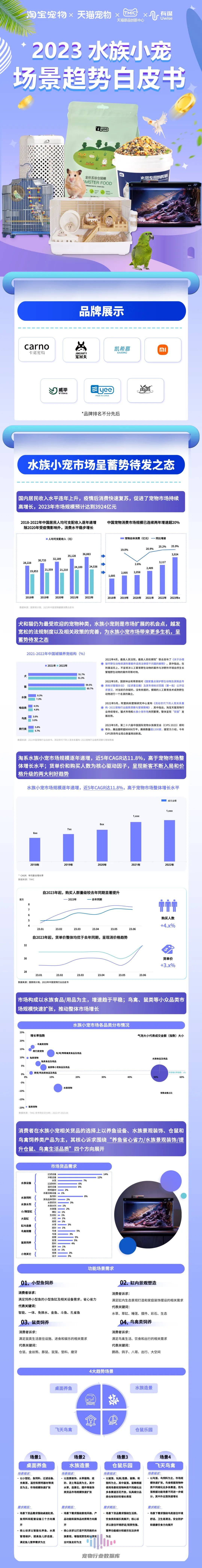 近日,TMIC×淘宝宠物×天猫宠物×有谋联合发布《2023水族小宠场景趋势白皮书》,对淘系小宠市场消费趋势进行了详细分析。