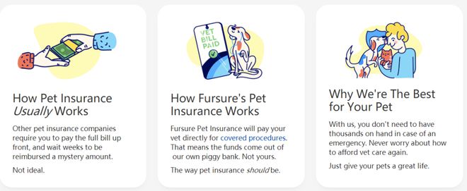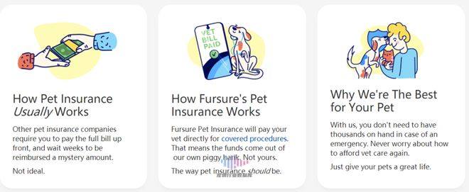 Fursure还提供一个用于奖励的品牌借记卡,可以兑换兽医护理费用,还能为用户提供宠物食品、玩具、狗美容和狗舍寄宿等方面的折扣和补贴,这一系列措施能从根本上保障宠物主的权益和宠物的健康。