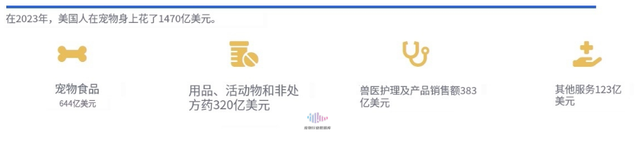 兽医护理和产品销售:包括常规兽医护理、外科手术和通过兽医诊所销售药品和其他产品,并基于AVMA和Packaged Facts提供的数据。不包括食品和款待销售。