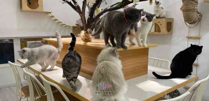 可以在墙面设计大量的猫爬架墙,猫咪本身是喜欢待在高处的动物,同时把顾客的座位放低,这样人宠互动会更加方便,可以参考日式的蒲团或者露营主题的科密特椅。