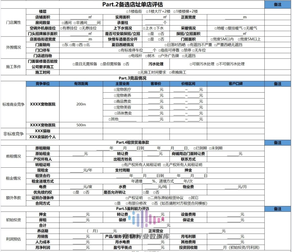 最后给你一个选址的评估表格,根据这个表格基本上就可以判断你的选址是否合适了.